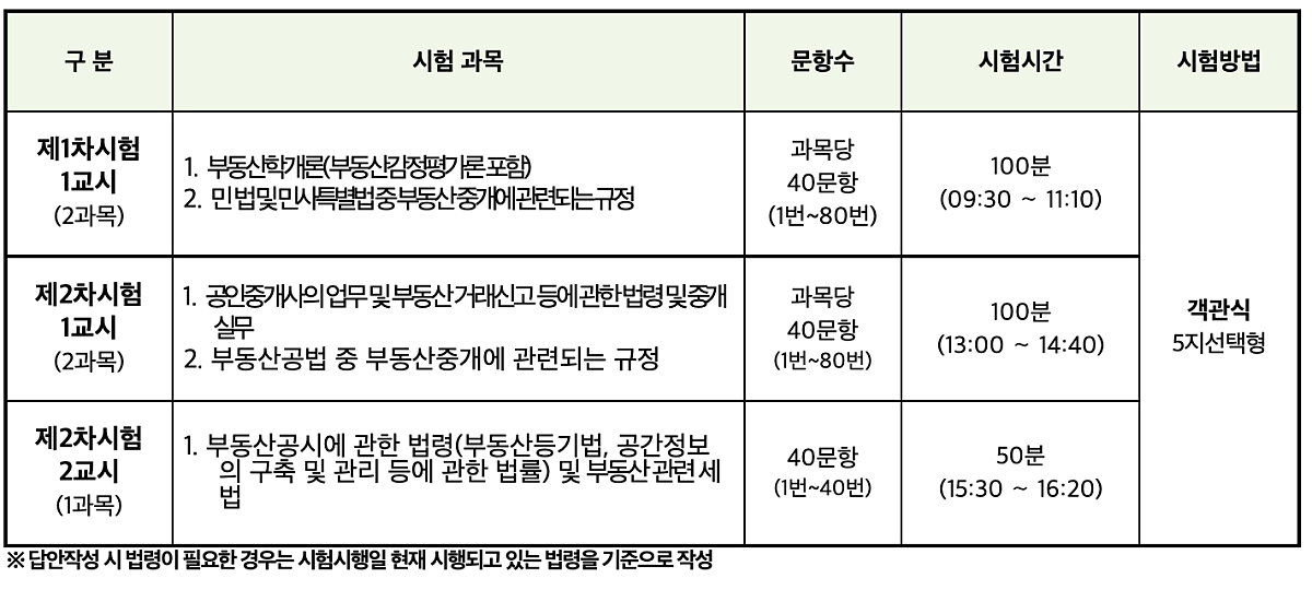 ※ 공인중개사 시험시간(1차/2차) *수험수수료 1차: 13,700원 2차: 14,300원 1/2차 동시 응시자: 28,000원